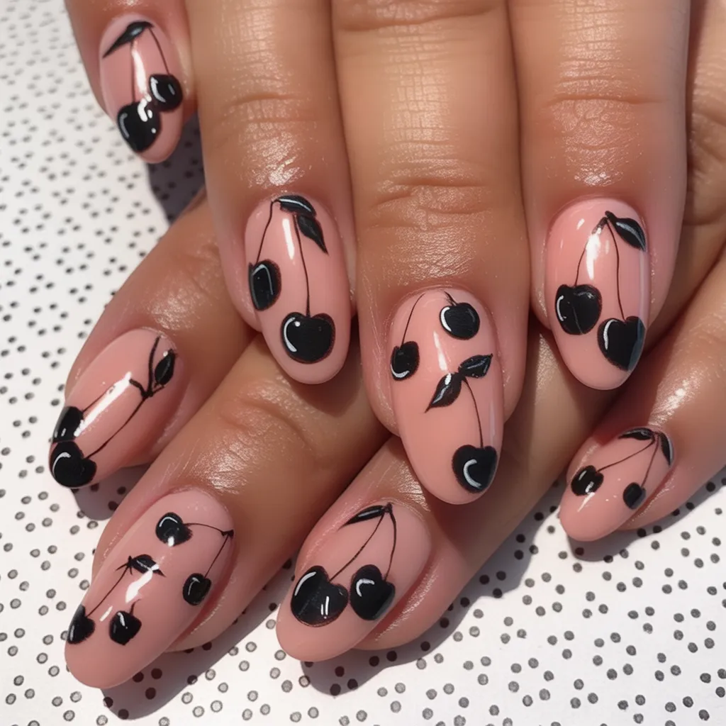 Almond nails at medium length are perfect for this playful Art. The neutral background under the fruit keeps the Design balanced. If you want spring nails for goths that still embrace seasonal charm, this is beautiful Inspo.