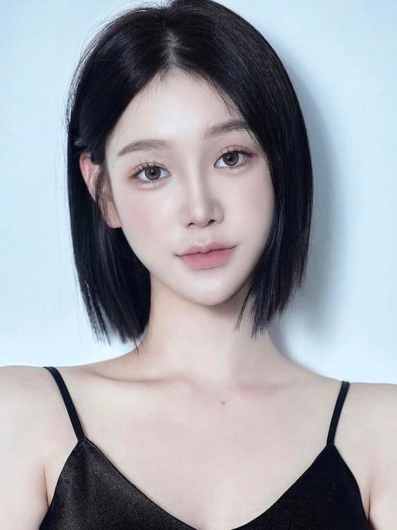 The haircut ideas for short hair Korean style focuses on sleek, straight cuts, often with subtle layers or bangs for added texture.