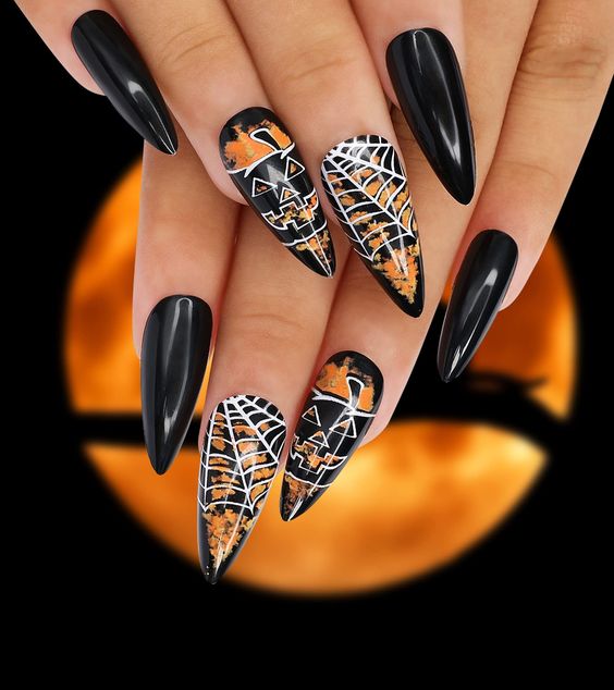 22 Halloween Nails Ideas 2024 With Fun Elegant Black And Orange Designs for Short, Acrylic Almond And Square Shapes