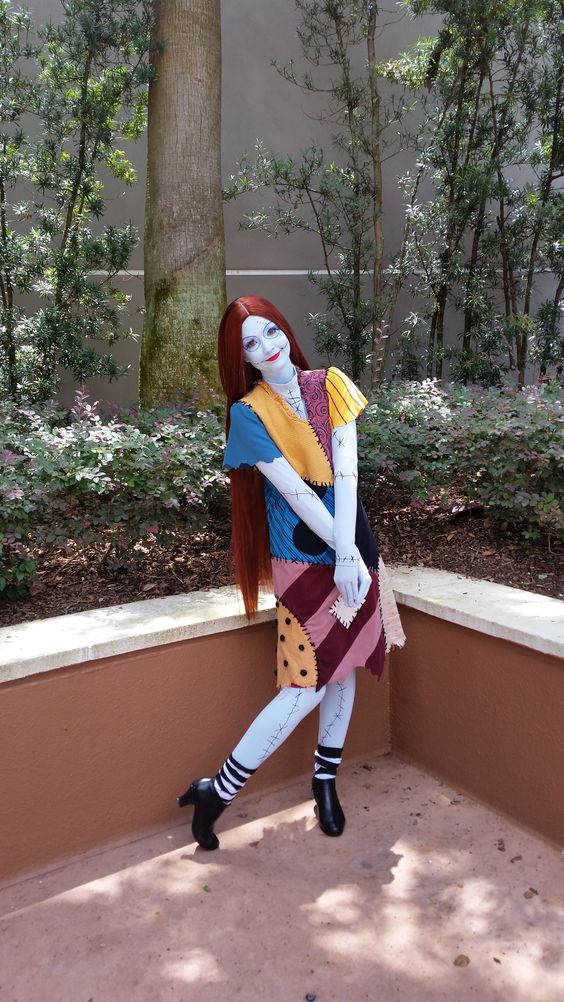 Embrace a whimsical and playful look with this patchwork doll outfit. The colorful patchwork dress, combined with pale makeup and red hair, creates a charming and quirky aesthetic. This costume is perfect for women who want a fun and lighthearted option for Halloween. The outfit’s vibrant colors and unique design make it ideal for daytime events or casual gatherings. The use of different fabrics, including denim and flannel, adds texture and interest to the look, making it a cute and creative choice.