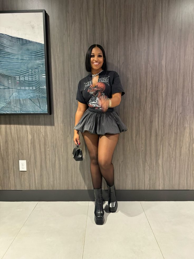Nothing says casual jeans meets punk glam like an oversized band tee tucked into a pleated mini skirt with chunky platform black ankle boots. This is a fall casual favorite, perfect for concerts or a casual night out. The platform boots add height while ensuring comfort for long hours of walking or dancing. Layering with a cropped leather jacket enhances the edgy appeal of the outfit. Pairing sheer black tights adds an extra layer of texture while making the look suitable for cooler seasons. Adding accessories like layered silver necklaces and a studded bag will tie the whole ensemble together. If you’re looking for a 2025 styling update, opt for textured fabrics like flannel or suede to add an extra level of visual interest.