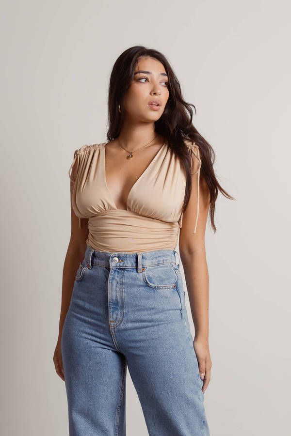 Infusing a warm terracotta hue into the mix, this halter neck crop top with a twist front detail brings an earthy yet bold contrast to light high waisted jeans. Ideal for an evening out, it’s a stellar jeans with crop top and heels ensemble.