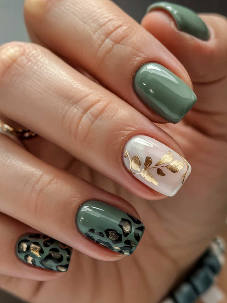 16. Green Glam with Gold Leopard