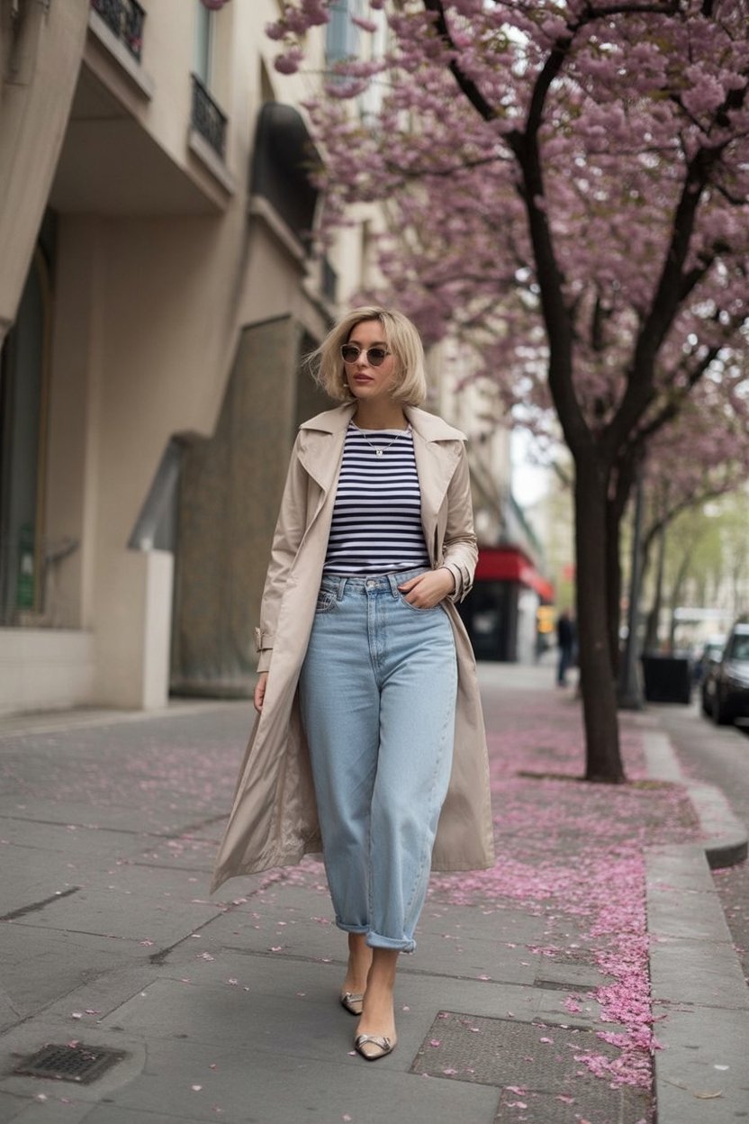 2. Effortless Trench and Denim Walk