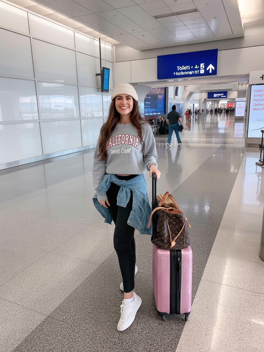 There’s something refreshing about seeing a sporty look that still feels stylish. This outfit is all about comfort, ease, and confidence—perfect for travel days when you want to look put-together without sacrificing comfort. It feels relaxed, modern, and very real.