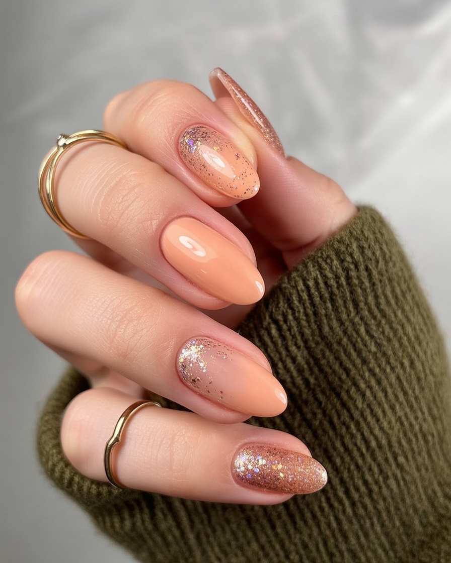 10. Peach Glitter Gradient Nails