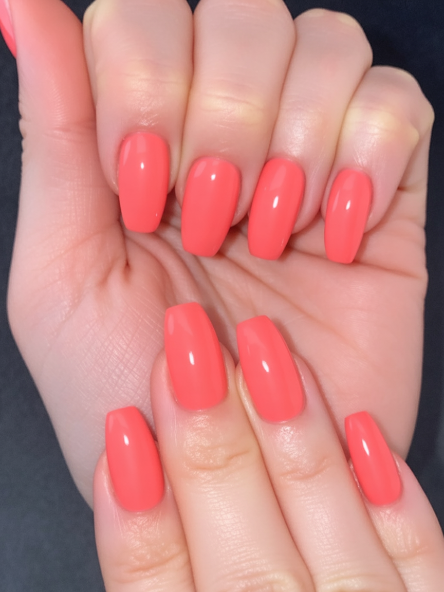 16. Vivid Coral Peach Coffin Nails