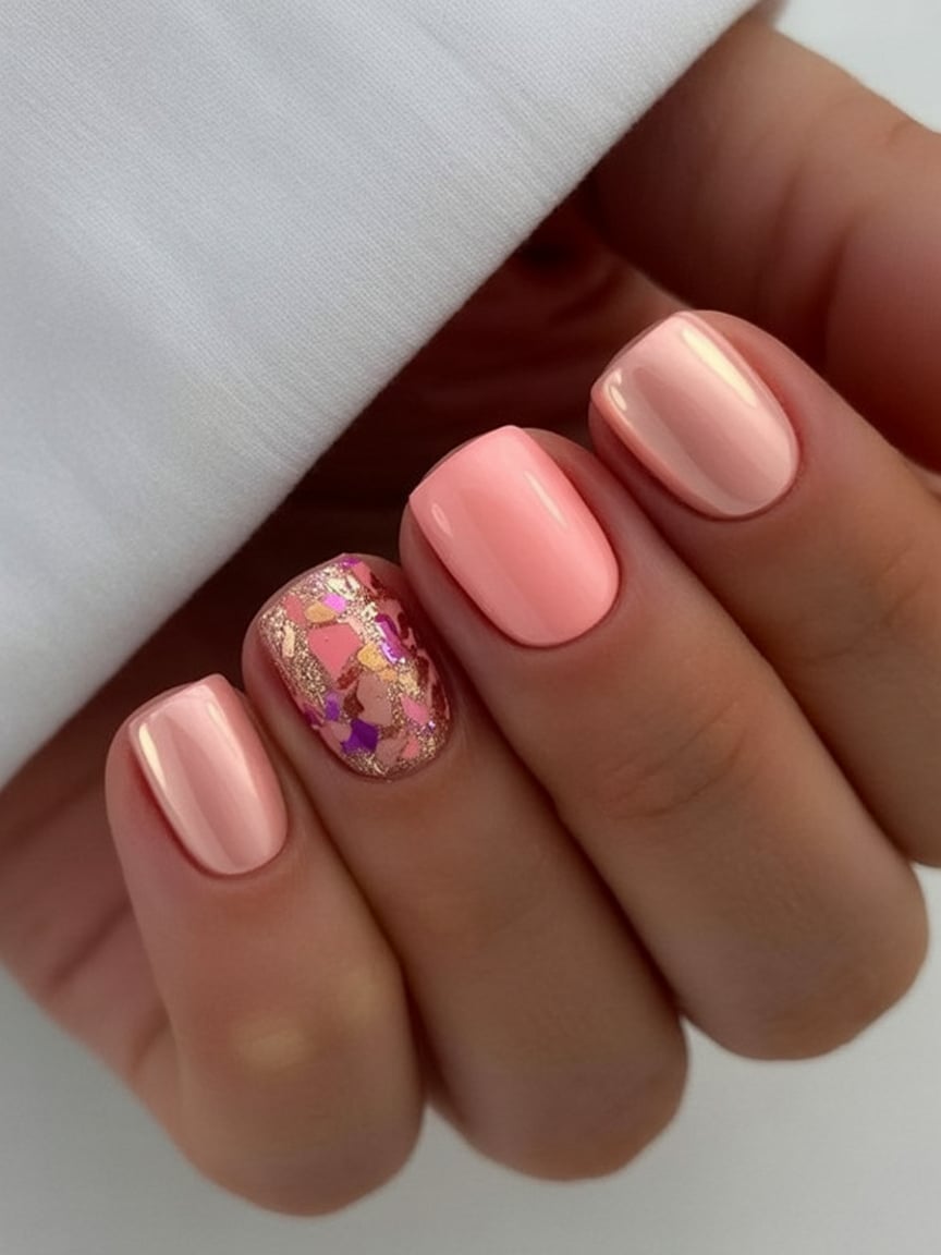 3. Short Peach Confetti Nails