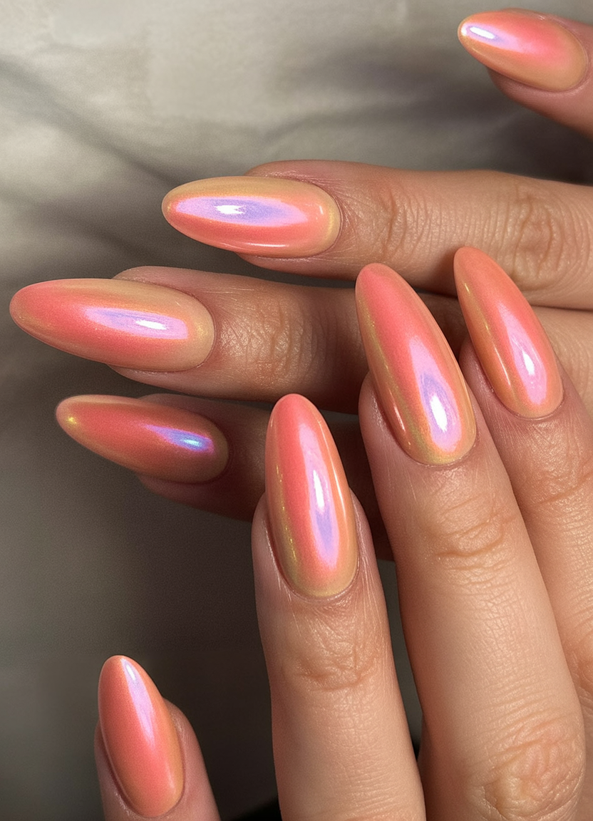 18. Iridescent Peach Chrome Almonds