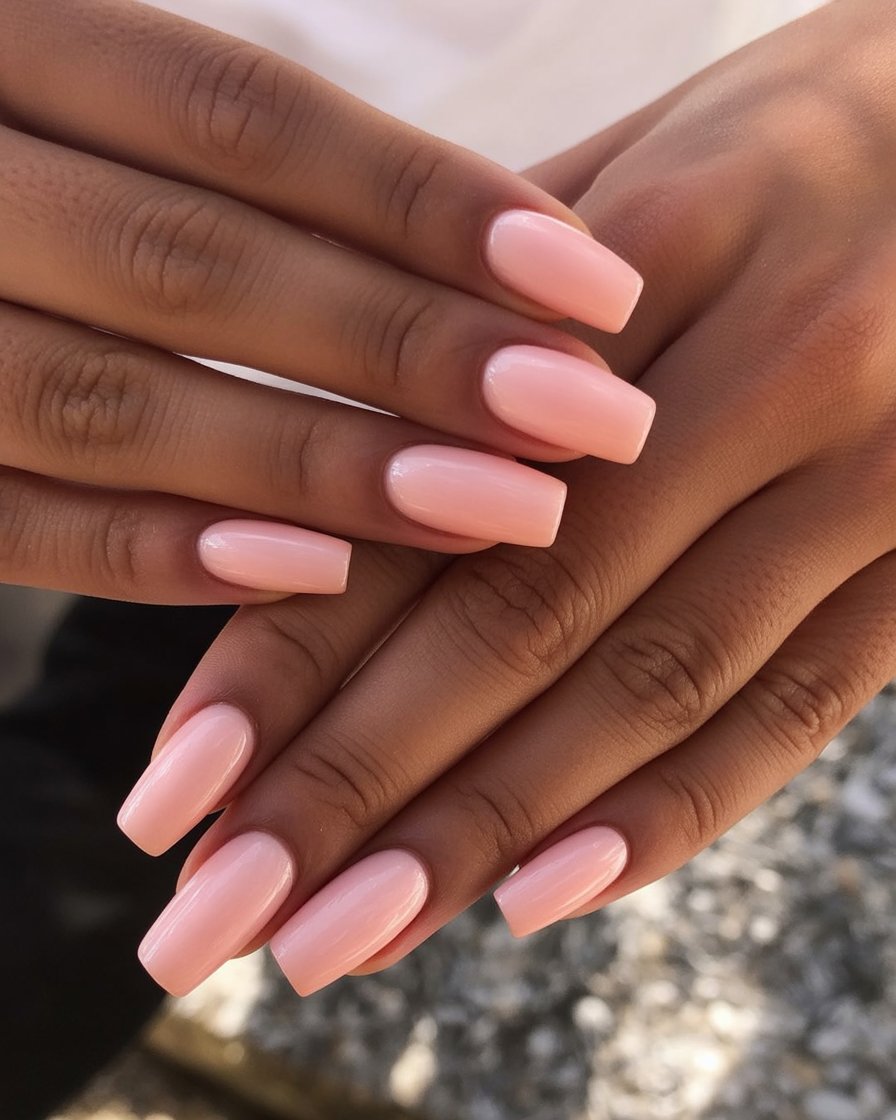 Square or squoval tips have a large place in the peach nails 2026 trend, particularly if one is a lover of a clean look. A slightly rounded tip is a good request to ensure that your nails aren’t too sharp. A strengthening base can also be applied if one has thinner nails. As the nail art is a block of simple color, it pairs exquisitely well with more fashion-forward statements such as prints, large earrings, and high bright-colored lipstick. It also stands out perfectly as a finish.