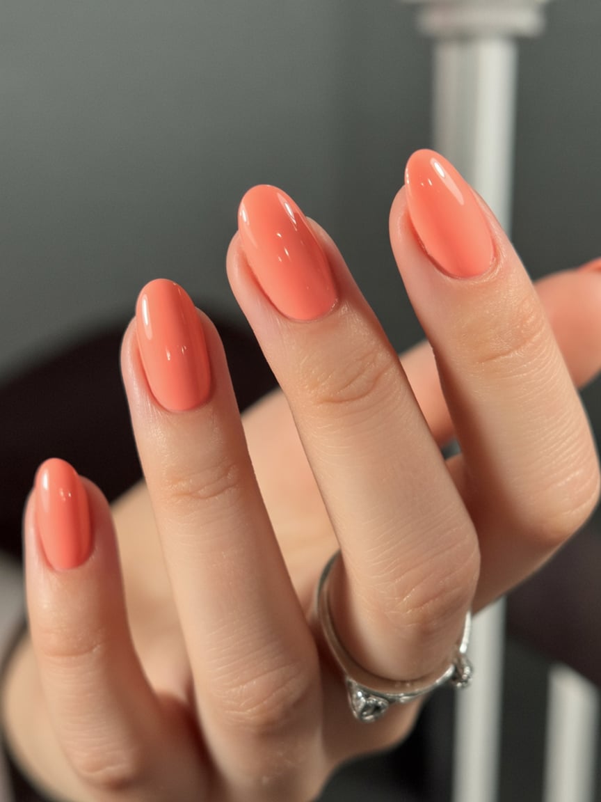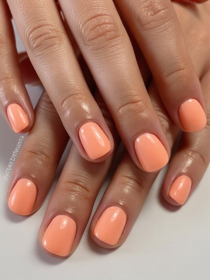 These short, rounded nails show that peach can still look high-class even if your nails aren’t. The color is a bright and creamy orange-peach tone that immediately brightens up your hands and takes away from the look of your skin. As it is applied to well-manicured short tips with a glossy finish, it is like you have just arrived from a quick summer weekend away when in truth you have not left your desk. It is that simple. The look is laid-back and friendly with a subtle air of superiority. It’s easy to wear short nails—they catch less and have less drama—but the bright coral keeps it interesting. This is a fabulous choice if you love peach nails in the 2026 style with a functional length to match your busy lifestyle. Just wear a couple of thin rings and a tinted lip balm to instantly look like you have your act together without going over the top.
