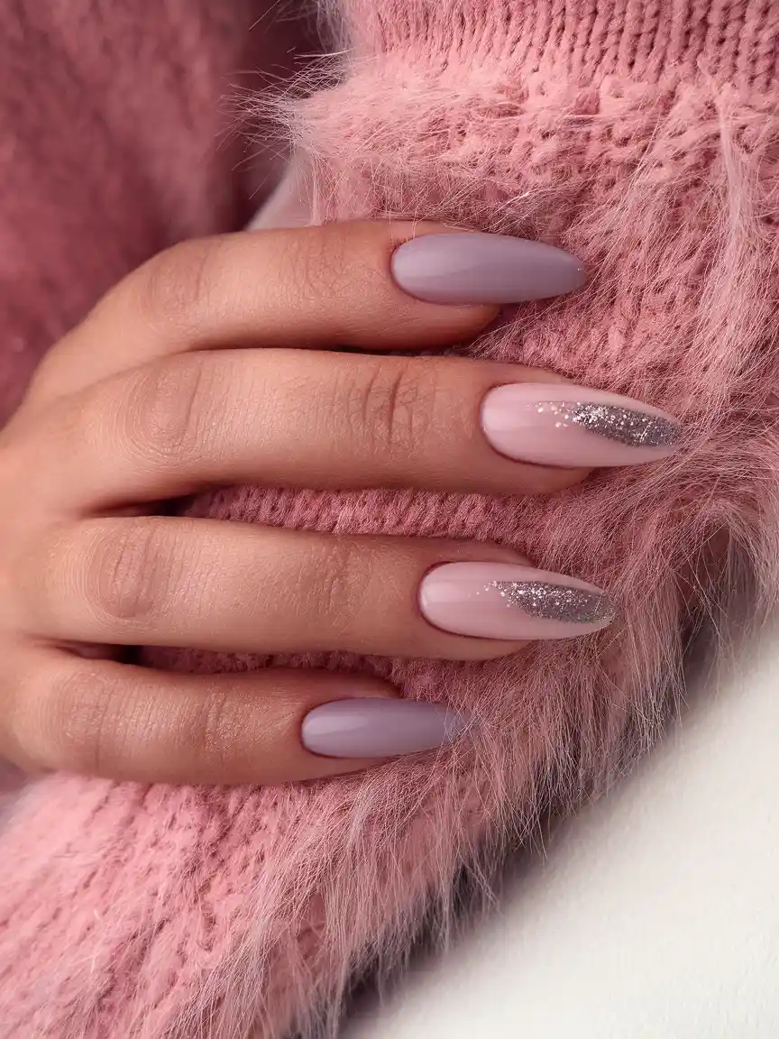 It is the ideal style to add to anyone who enjoys low maintenance looks, as the style will pair well with cooler shades of dusty colors in your dressing and looks good on both short nails and longer ones as well. A visual boost is also supplied by the glitter fade, which is perfect when trying to create some length to skinny fingers.