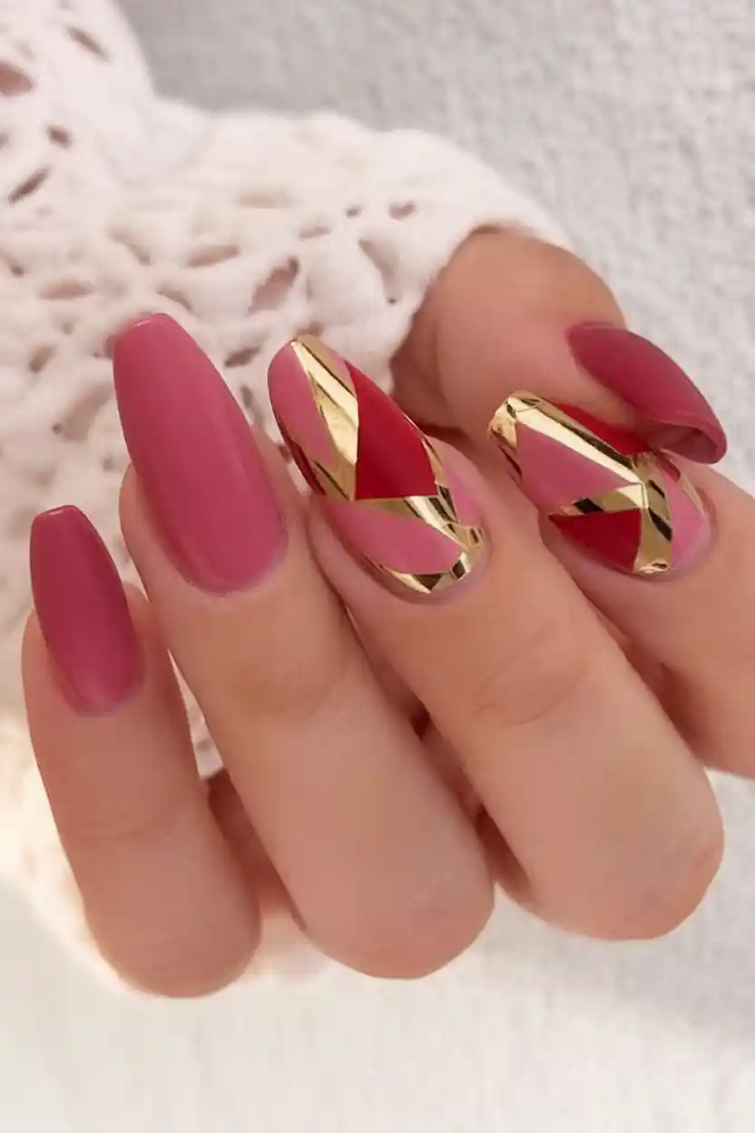These nails are equivalent to a polished walk on golden trees. A perfect contrast of the rosewood and brown tone is intertwined with soft accent (warm yellow and pink leaves) nails. They feel polished, modern, and absolutely seasonal.