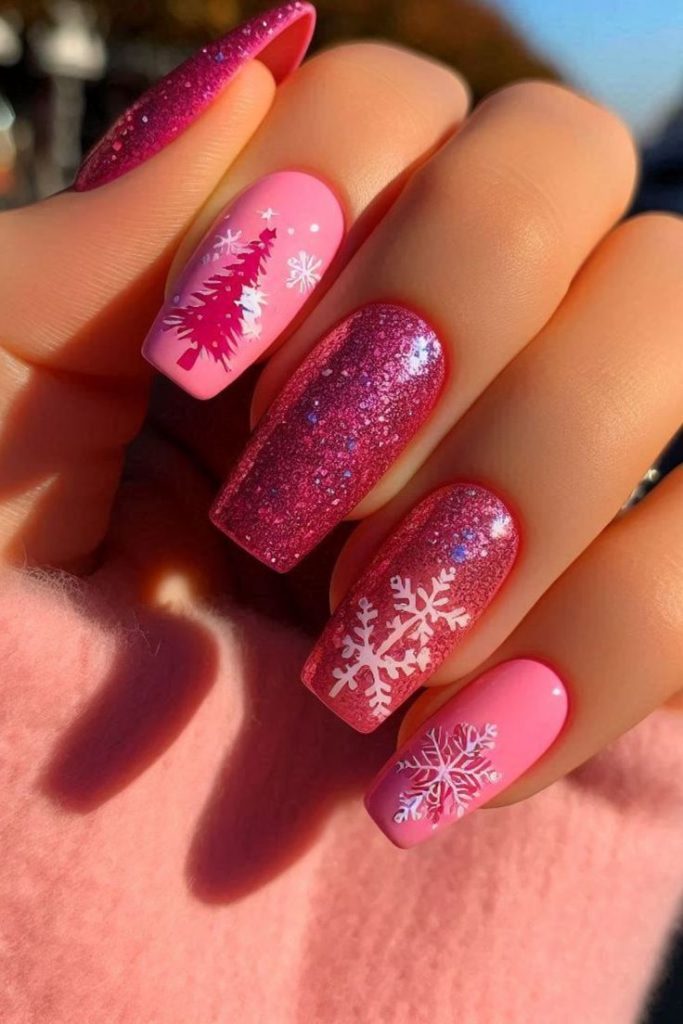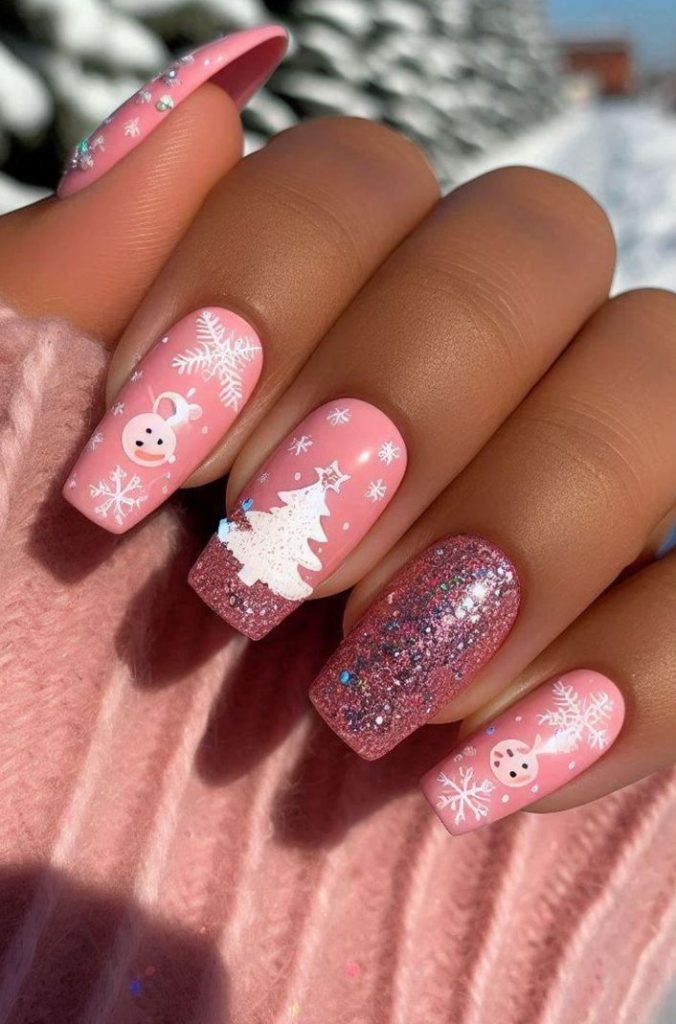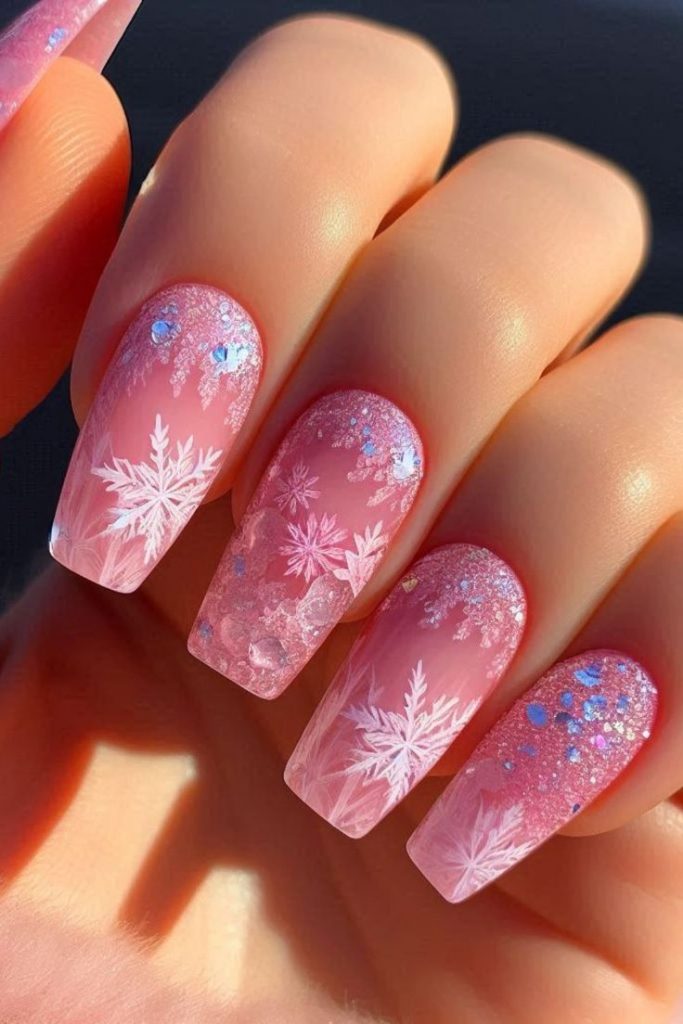 22 Pink Winter Nails 2024-2025 with Snowflakes, French, Glitter Designs for a Simple Festive Look