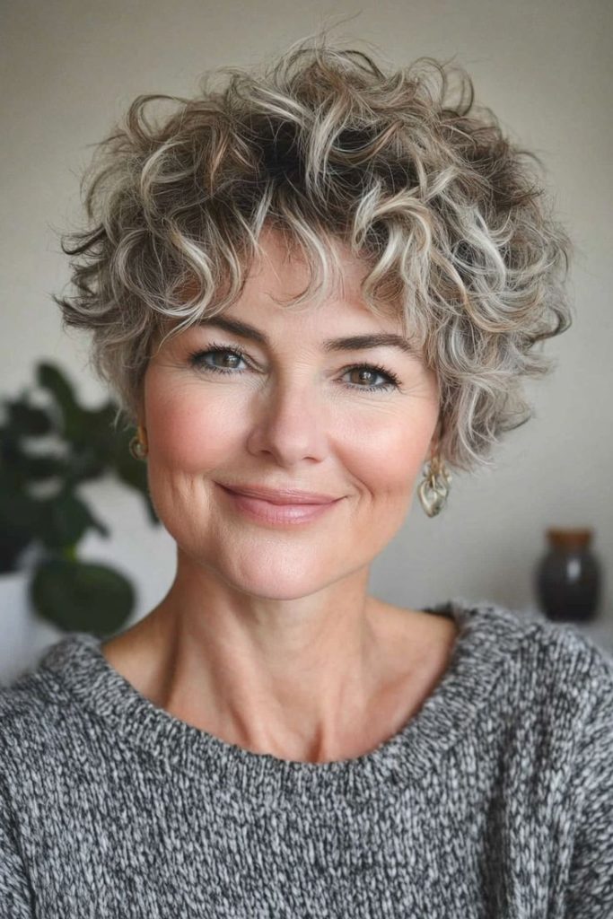 This curly crop is a celebration of natural texture, perfect for women who love natural hair styles. The short cut highlights the beauty of curls while keeping them manageable. It’s an empowering style for women over 50 or anyone looking to make a bold statement.