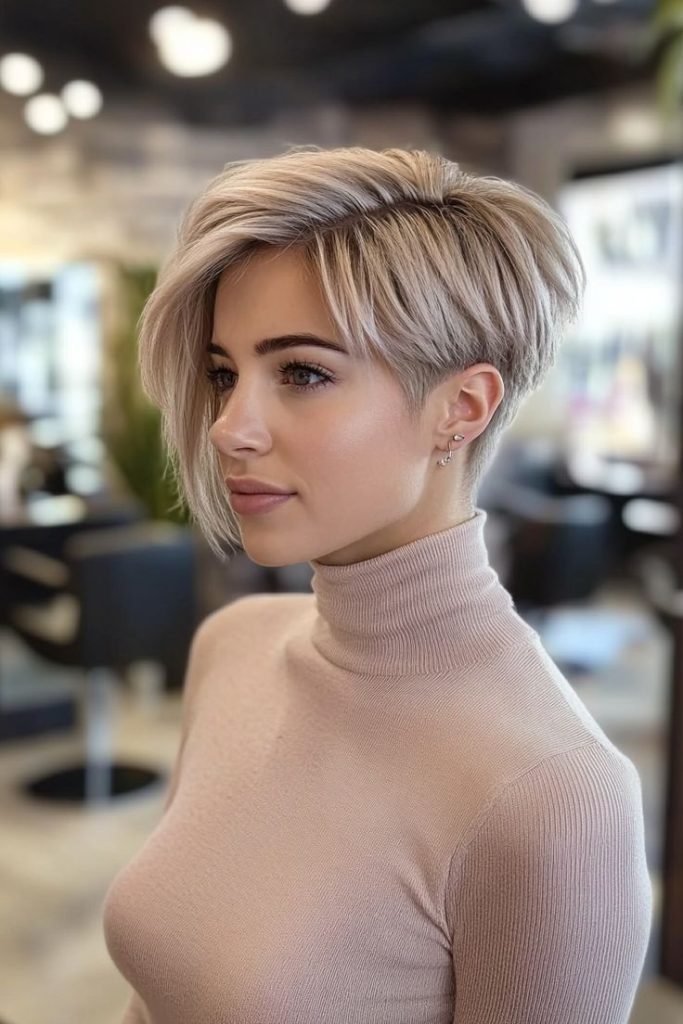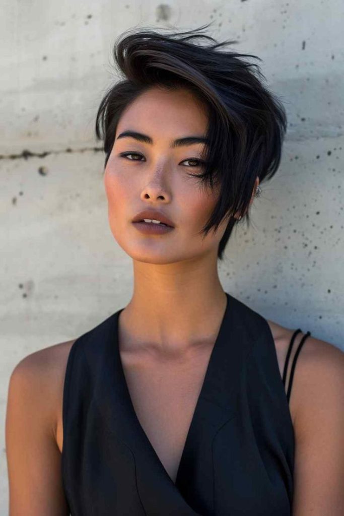For women seeking a bold yet feminine look, the layered pixie with a side sweep is a standout choice. The side-swept bangs soften the style, making it suitable for round faces or thin hair. This pixie cut offers plenty of texture, ensuring a fresh and modern appearance.