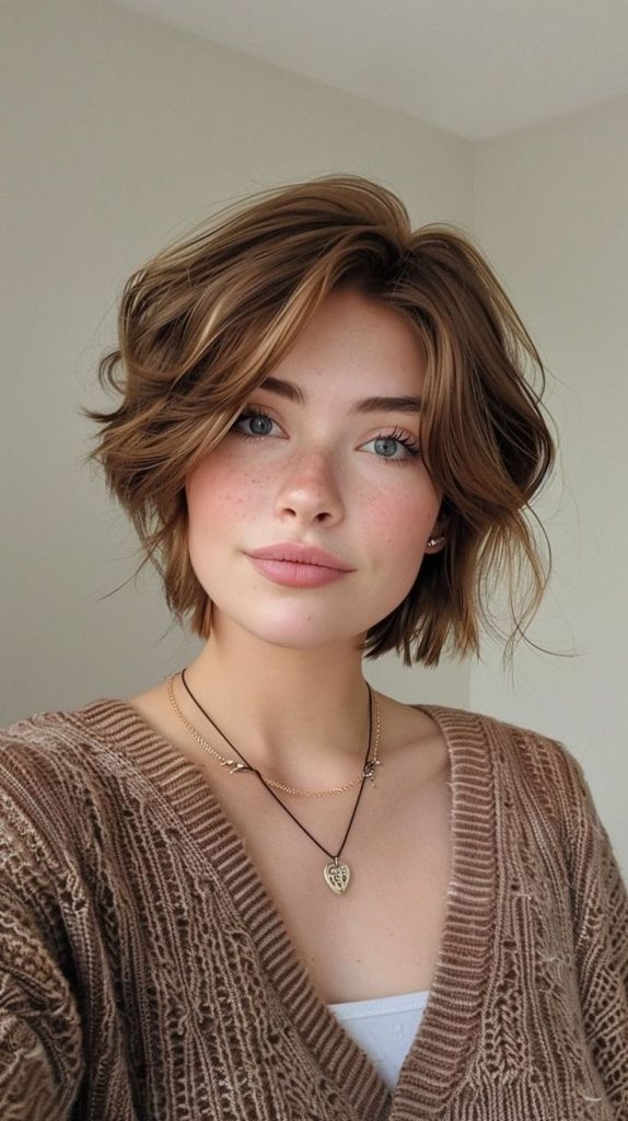 A textured auburn bob combines warmth and depth, making it a top pick for 2025. This style’s rich auburn color enhances the layers, adding dimension and movement. It’s an excellent option for women with natural curls or those who prefer a slight wave for added texture.