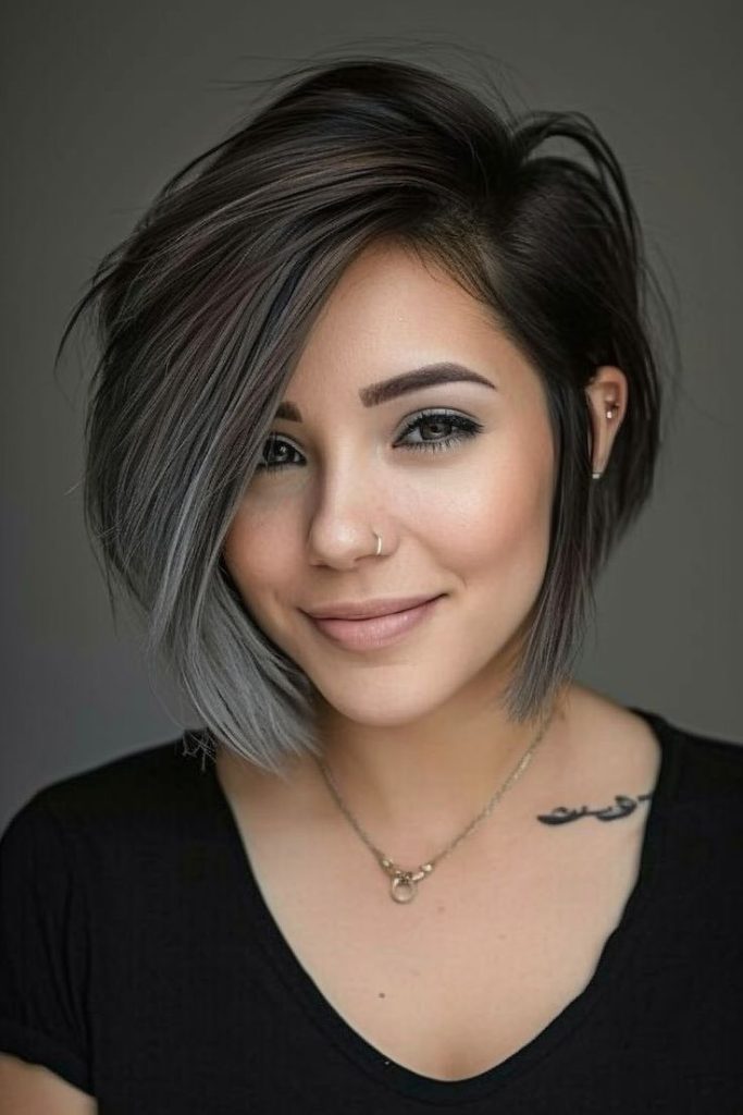 An asymmetrical bob exudes sophistication and edge, perfect for women seeking a chic yet daring look. This style features one side slightly longer than the other, creating a striking silhouette that flatters most face shapes, including round faces. The sharp angles add dimension, making it an excellent choice for those with thin hair or fine hair.