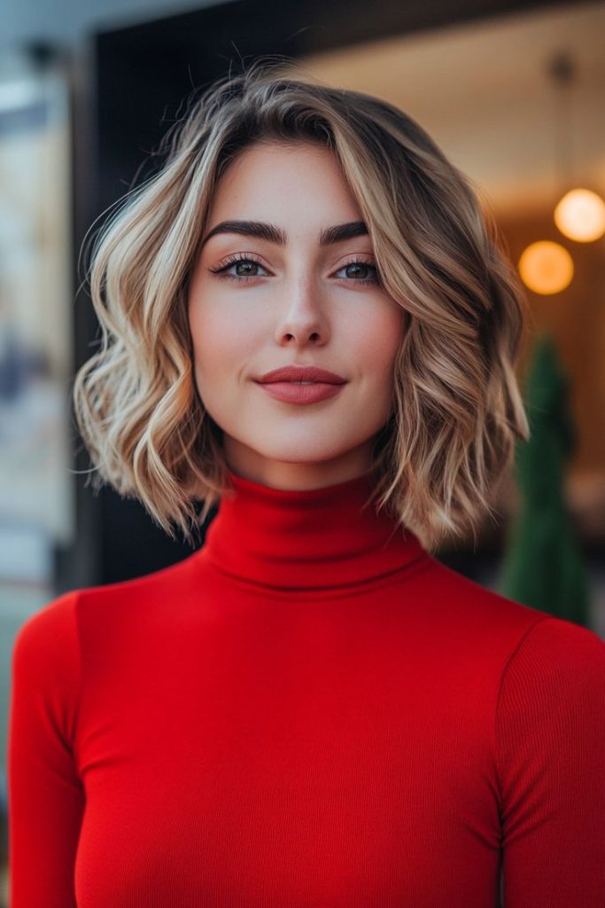 This bob is versatile, complementing both casual and formal settings. Use a curling wand to enhance the waves or straighten the ends for a sleek finish. Pair it with soft makeup and gold accessories for a timeless look.