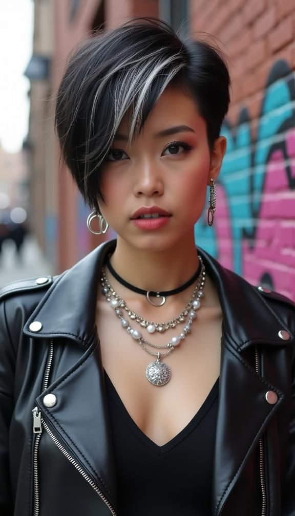 For maintenance, ensure the silver streak stays bright with purple shampoo, and keep the longer sections sleek with a straightening balm. This hairstyle pairs perfectly with leather jackets or statement jewelry for an extremely stylish look.