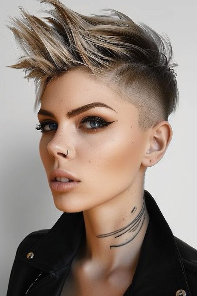 For styling, use a strong-hold gel or wax to shape the spikes, and finish with a shine spray for a polished effect. This hairstyle is perfect for women who want to turn heads and make a dramatic impact.