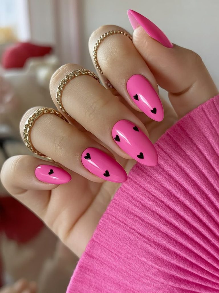 6. Hot Pink with Black Tiny Hearts