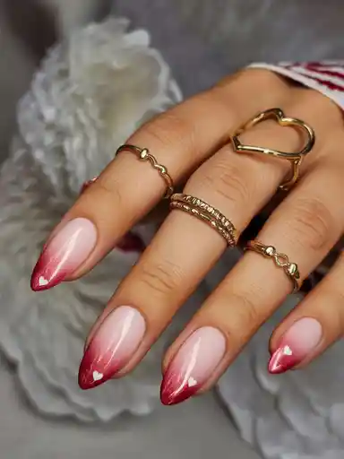 What makes it special: Because that gradient does so much work, the design itself stays minimal while feeling fully ripped. The almond shape makes the ombre look even more seamless and chic and serves so well when taking that 2026 Ideas folder photo. And if you’re doing this with gel, request a soft sponge blend from a deeper pink into a lighter milky tip, and then pop the hearts slightly off-kilter so it feels intentional, not stamped. It’s a wearable take on itty bitty heart nail art—enough to be sweet, while (thankfully) never crossing the line into saccharine.