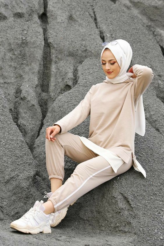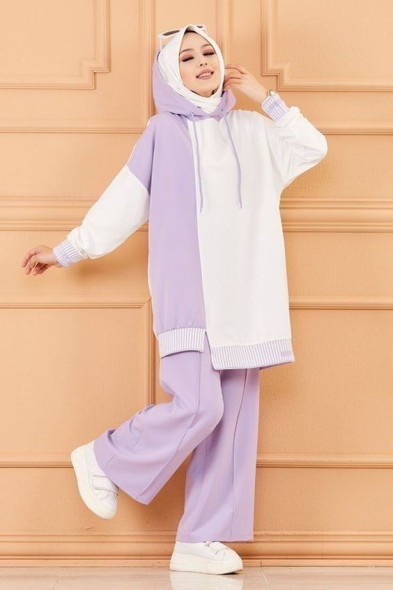 Lilac is the color of the moment, and this hoodie and trouser set capture the essence of leisurewear with a pop of color. It’s perfect for those who want to make a statement with their casual attire without compromising on comfort or modesty.