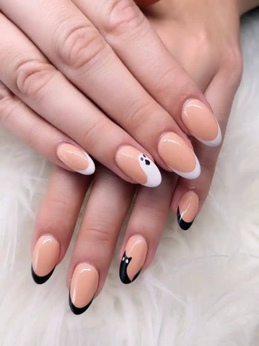 When traditional French tips go spooky? You have this slick nude collection with clean sharp white and blacks, some playful ghosts and even a mischievous black cat. It is kind of a costume party in your fingers, yet in a murmur.