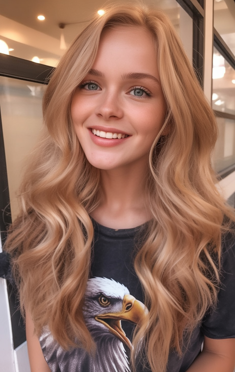 To play up the color, think about colors to wear that make it pop: warm taupes, soft navy, dusty rose, and a classic red lip all look stunning against this tone. Delicate gold earrings or layered necklaces complement the glow without overwhelming it. Because the hair already has plenty of movement, you don’t need heavy styling—just a light texturizing spray and maybe a soft cream on the ends. It’s the kind of hair that quietly elevates whatever outfit you throw on, from a graphic tee to a tailored blazer.
