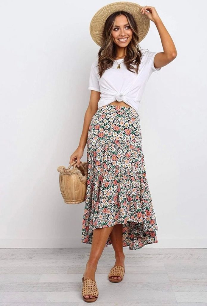 1. The Classic White Tee & Floral Maxi Skirt Combo