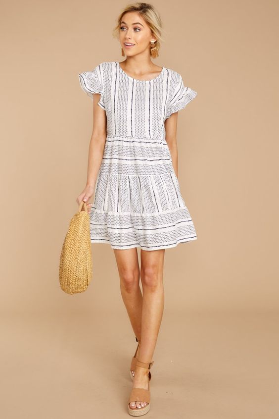 A monochrome striped dress is a summer staple, blending simplicity with sophistication. This piece is the epitome of an aesthetic yet cute summer outfit idea, perfect for a day out shopping or a casual brunch.