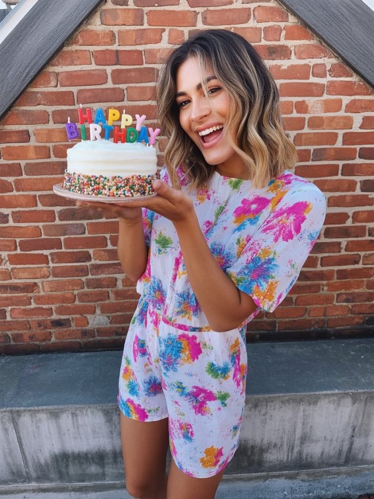 This romper is pure joy in clothing form. The bright splashes of color on white feel like confetti frozen midair, and you can’t help but smile just looking at it. It’s the perfect one-and-done piece for birthdays, backyard celebrations, or any summer day when you want your outfit to match your mood. You don’t need much else—just a cake, a camera, and your favorite people cheering beside you.