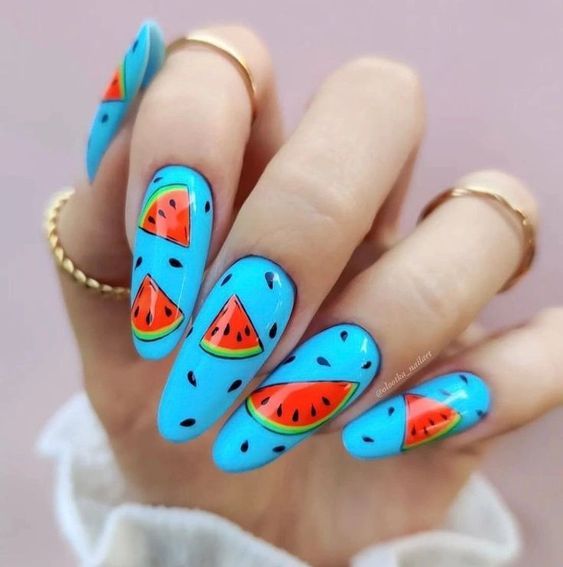Blue is the color of the season. Whether it’s a soft pastel or a vibrant electric, trendy summer nails blue are a must-try for a serene yet stylish look.