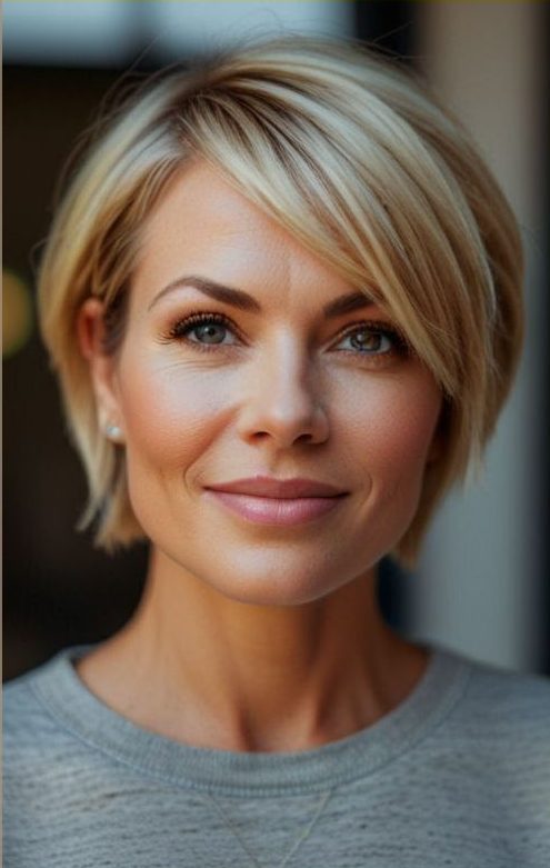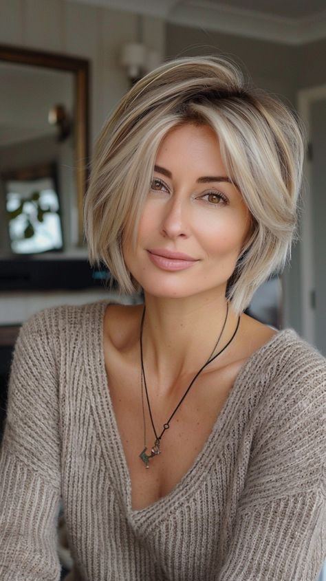 This tousled bob, highlighted with blonde tones, exudes a relaxed, beachy vibe that contrasts beautifully with the winter season. The loose waves add texture and movement, making this bob perfect for women who prefer a more laid-back style. The blonde highlights bring a touch of brightness, reminiscent of summer, but still fitting perfectly with winter outfits that lean toward neutral or earthy tones. This cut is particularly flattering for women over 40, as it adds a youthful glow without looking overdone. The tousled effect also makes it a great option for those who enjoy a more effortless, lived-in look.