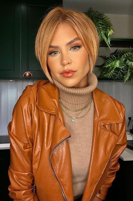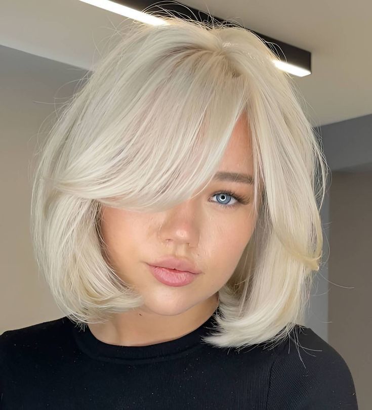 For those who are bold enough to embrace a hair color short enough to make a statement, this icy blonde bob is a stunning choice. The swooping bangs create a soft frame around the face, adding a touch of sophistication to the look. The cool tones of the blonde are perfect for winter, reflecting the icy, crisp atmosphere of the season. This style pairs beautifully with minimalistic outfits, allowing the hair to be the centerpiece of your look. For women looking to refresh their style in 2024, this bob is a contemporary yet timeless choice that works well for both casual and formal occasions.