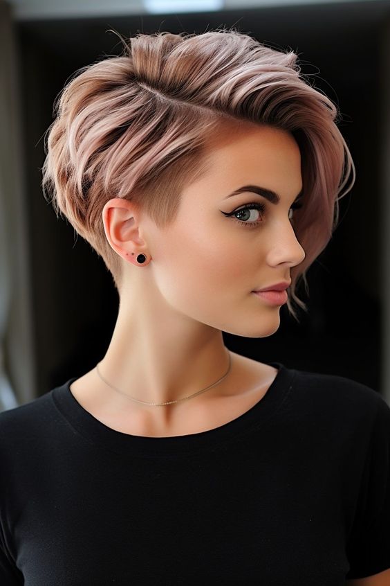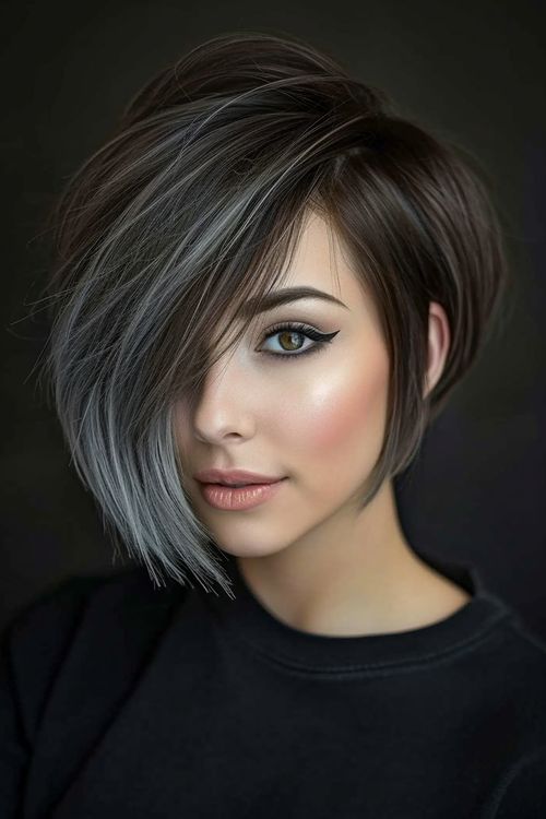 This undercut bob is all about attitude. The shaved sides give the look a rebellious edge, while the longer top layers soften the overall style, making it both bold and wearable. The ash gray highlights add depth and dimension, enhancing the modern feel of the haircut. This bob is ideal for women who are looking for a style that breaks away from tradition and embraces a more daring aesthetic. It pairs perfectly with structured winter pieces like leather jackets and chunky scarves, making it a standout choice for those cold, crisp days.