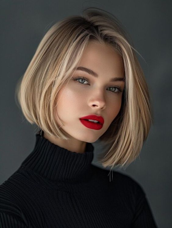 This soft blonde bob with subtle layers is all about understated elegance. The layers are gently tapered to add movement and volume, while the blonde shade is warm and inviting, making it perfect for the winter months. This bob is an excellent choice for women who prefer a more natural, effortless look that still feels polished. It’s versatile enough to be worn both casually and in more formal settings, and the soft blonde color complements winter’s muted tones beautifully. Pair it with cozy knitwear or a sleek, minimalist outfit for a stylish winter look.