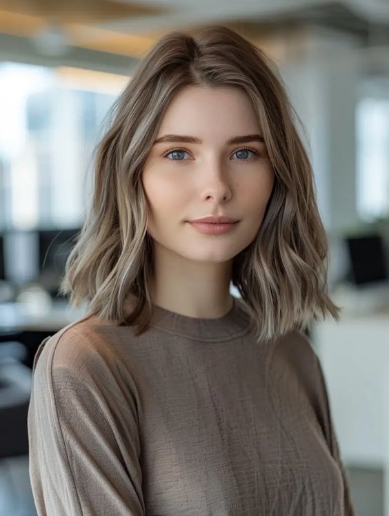 For the fashion-forward woman, an edgy asymmetrical bob offers a bold statement. This cut features one side slightly longer than the other, creating an avant-garde look that’s sure to turn heads. The ash tones add a cool, modern edge, making this style a perfect match for winter outfits that lean towards monochromatic or minimalist aesthetics. This bob is ideal for women looking to make a statement while staying on-trend with the latest hair color choices. It’s a cut that exudes confidence and pairs well with sharp, tailored winter clothing.