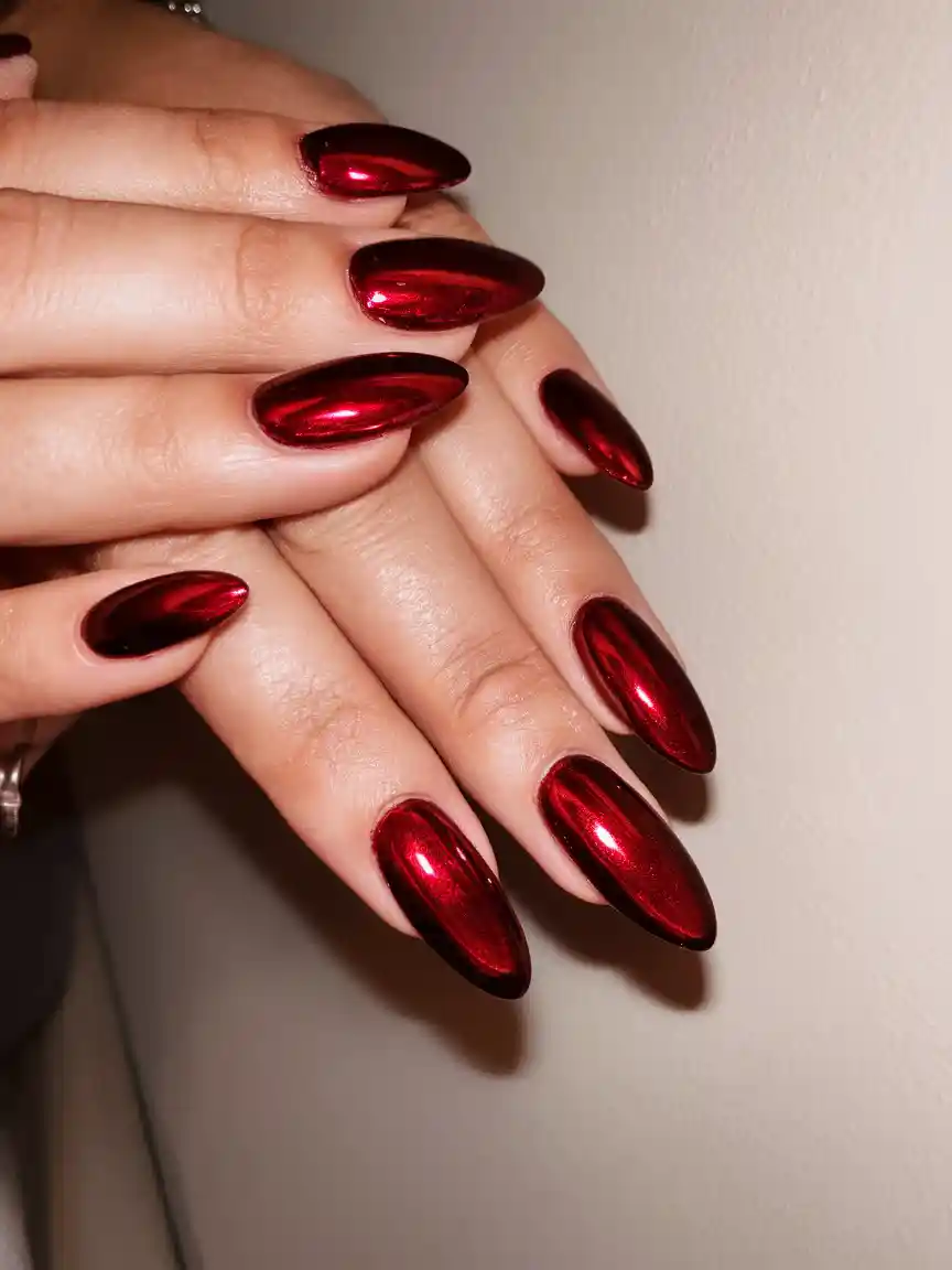 This vibrant orange chrome practically screams fall. Think pumpkin patches, cinnamon sticks, and golden hour selfies. The red color is daring yet not obnoxious and is a great way to adopt the fall color trends in 2025 without being too in-your-face in the process.