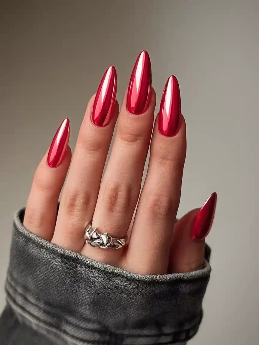 This is red chrome and is geared to fall nights – fierce and hot, and definitely sexy. The finish is mirror, which reflects any glint in the light, including even such basic outfit. It is a classic style that will get a new breath in 2025, particularly, in case you appreciate a glamorous twist.