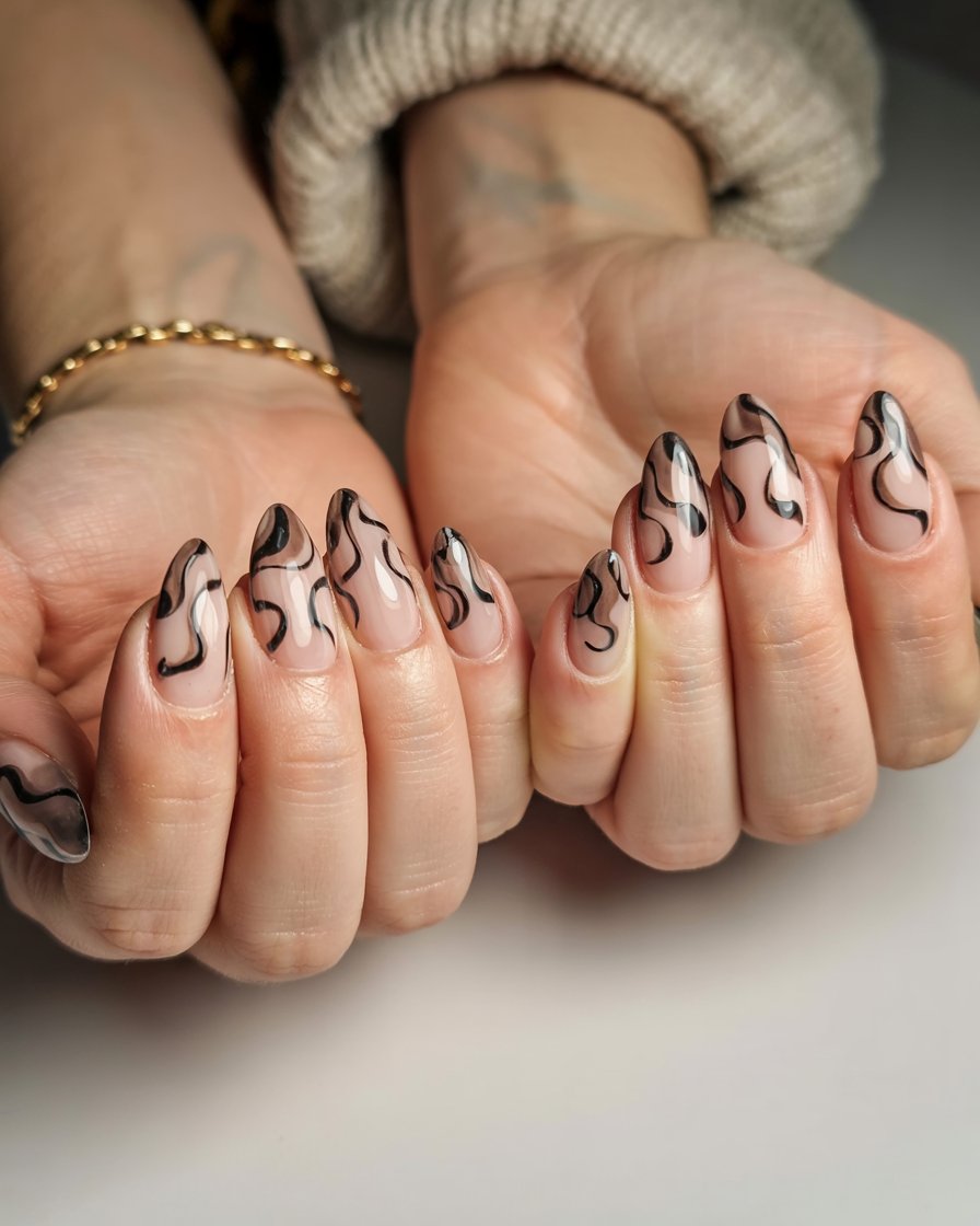 This works best for long almond or stiletto nails. And when you know that you need something strong, something of the time, something completely over the top trendy in 2025, then this sketch ticks all of the required qualities of the list, especially ladies who spend their waking hours in the leather jackets, and enjoy a bit of the drama.