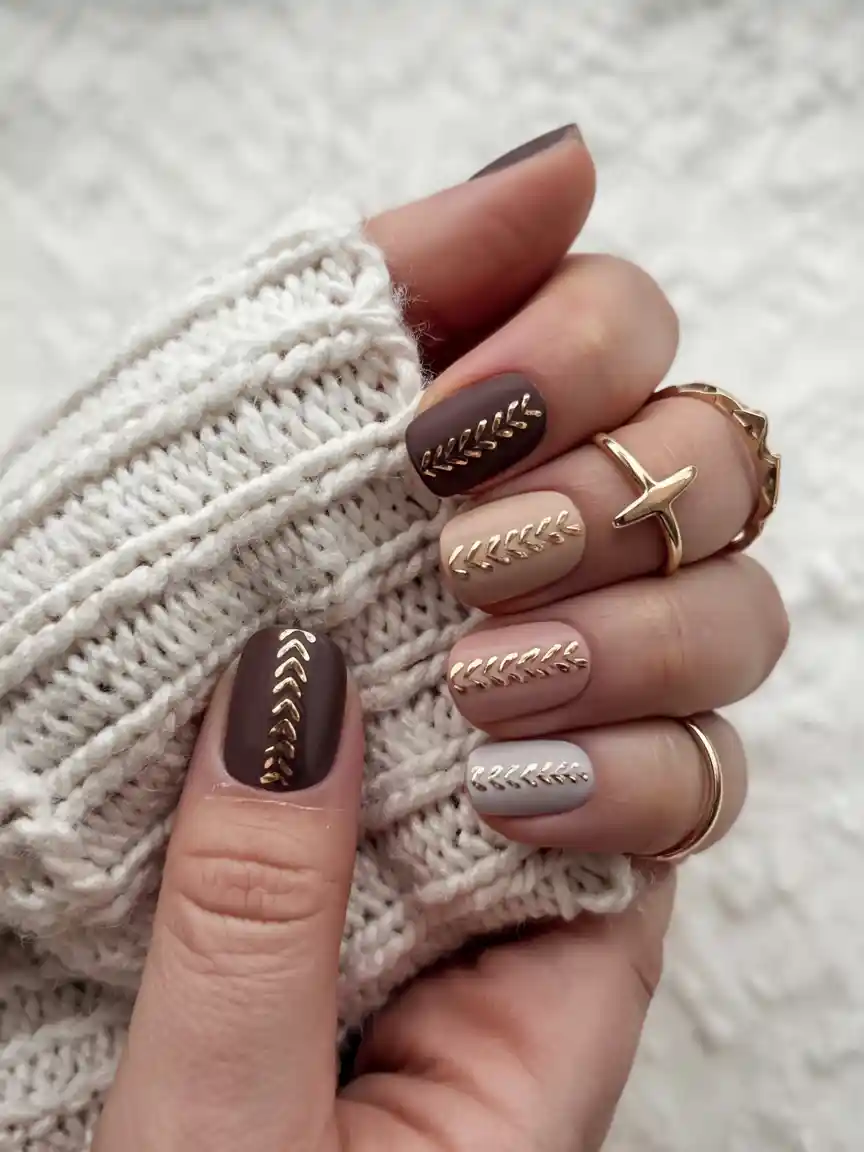Your most-prized comfy knit sweater Lovingly hugs your hands these matte nails accompany you everywhere. The slightly wavy, braided textile pattern on taupe, beige and wine colors will flow out that sweater weather energy in the most cutest manner.