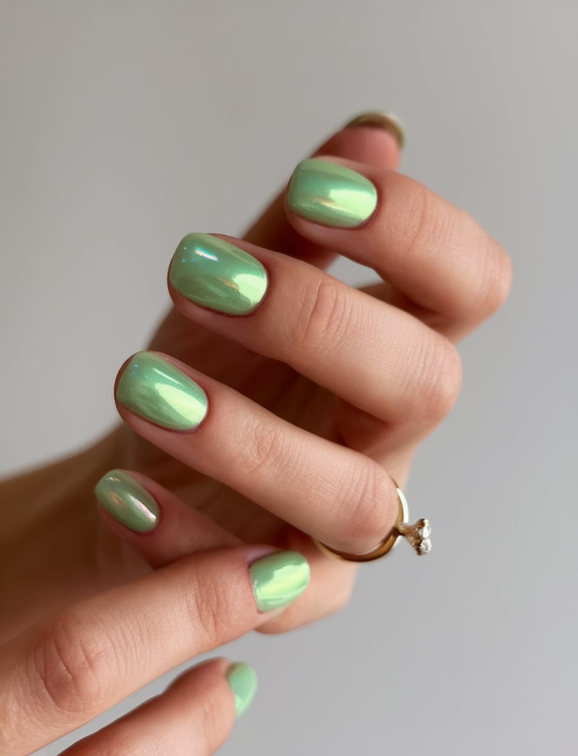 It is an understated but a fashionable choice of people who want to have a pair of 2025 green nails that are natural. It is fantastic on the short square shapes, and goes marvelously with silhouette wardrobes and gold washed accessories.