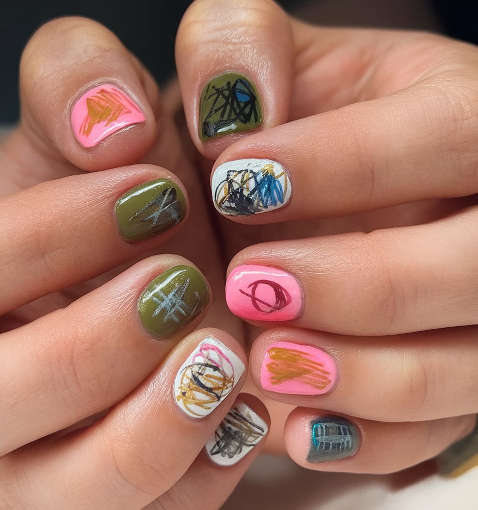 The pattern is applicable to the ladies who desire something adorable and communicative on the short natural manicure. It is unique and with personality, it is a way of expression of artists or teachers or any person who can view hands as a form of mirth.