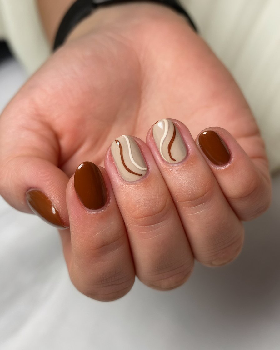 This design is a treasure to those who are into neutral nails in 2025, with deep tints. It perfectly suits every skin tone, including brown skin and matches with fall outfits that may be layered. This manicure works every time to give a quick stylish boost of low effort.