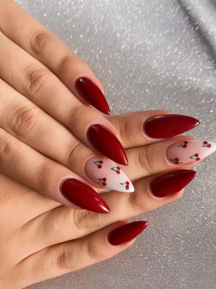 This design is suitable in nails of any length and is ideal in a fall date night. Square or almond shapes, you can wear them all on this look, which has adequate amounts of detail and does not overwhelm. It reminds just right the berry shade of lipstick and gold studs to complete the autumn feeling.