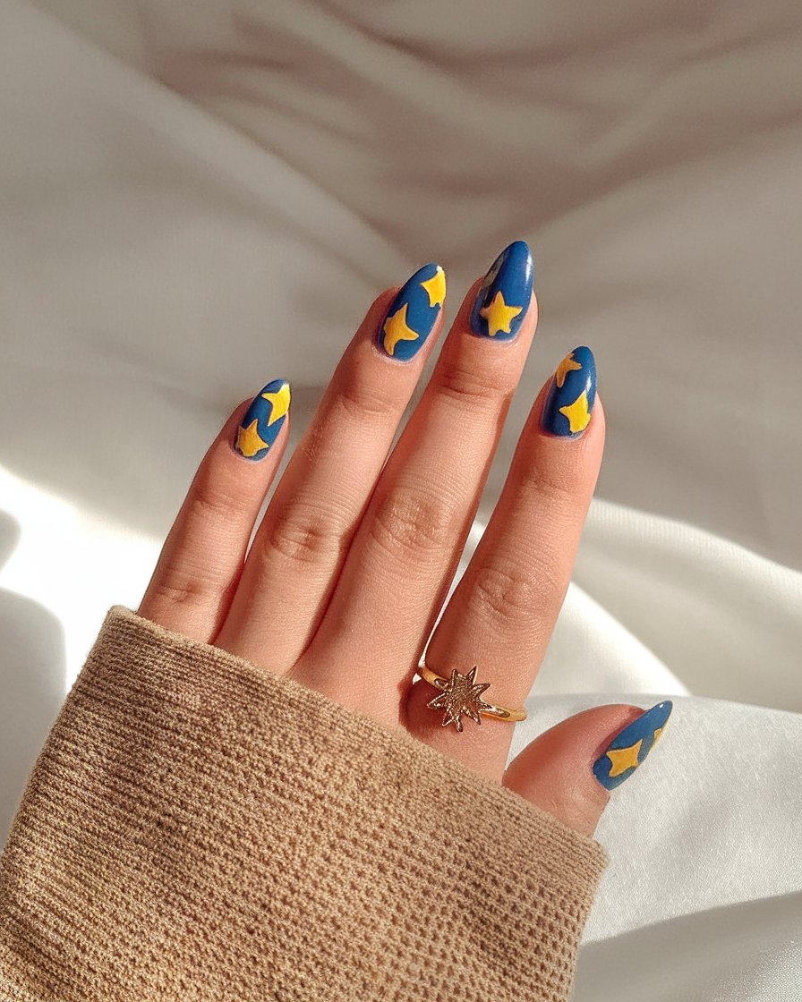 This design of stars is similar to a fall clear night sky but deep blue with this bright yellow stars all over the nails. It is playful, full of extravagance and totally out of the blue when it comes to autumn, thus even more enjoyable.