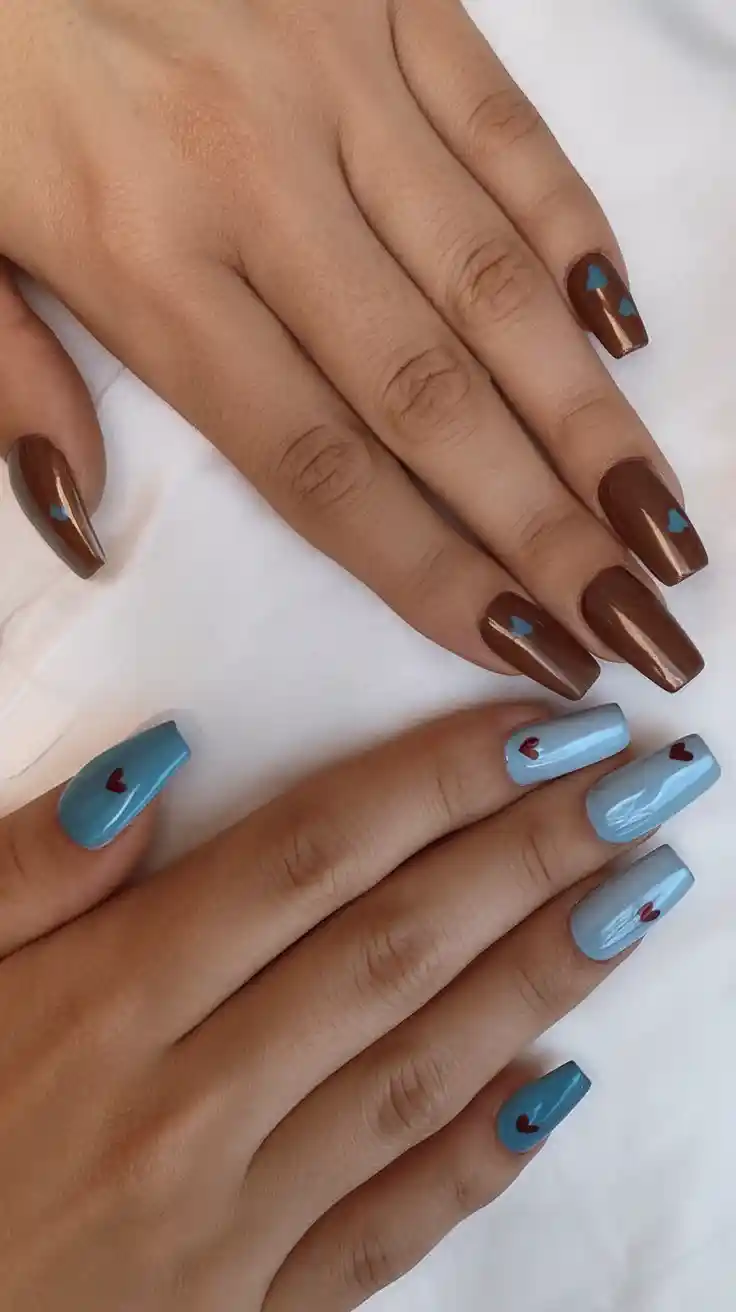 This is your favorite fall latte… on your nails. This combination will consist of a warm blend of chocolate brown and light gray, which is relaxed, composed and coolly stylish. The shiny nature creates a degree of polishing so that it would not be too casual.