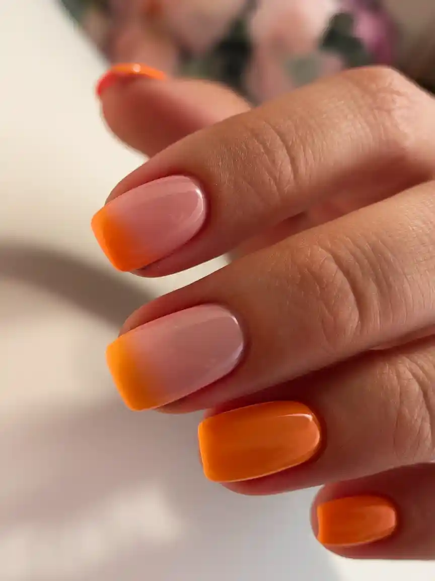 This creamsicle ombre is a combination of soft peachy pink to deep pumpkin orange a comfy gradient that is like falling leaves. It is cozy, complimenting, looks pretty on the eyes, and is an ideal switch design in early fall.